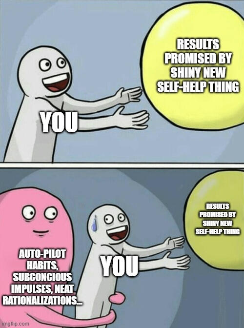 You fear a life of sacrifices, strict rules, and rigid routines—a set of interventions you realistically won't want to keep.You worry that this is going to ask a lot from you—that you just won't have what it actually takes.You doubt you even have the capacity for change and improvement. That, as it always happens with you and self-help, you'll take 1 step forward, but then 19 steps back.