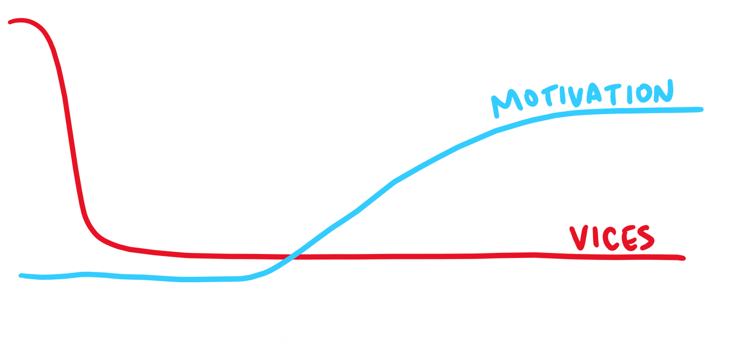 That last part is key—as much for your first iteration as for your fifteenth. We often try to transition out of a binge by jumping straight into productivity. It makes sense: we’ve just burned a lot of precious time, and there’s an urgent impulse to play catch-up.But it’s usually too much, too soon. The motivation-suppression symptoms are still intense, and the resulting Expectation Gap becomes unbearable.