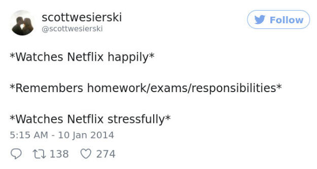 Here you are flicking through... whatever, when you surface again for a moment. This time you throw your phone at the couch in anger.With the deadline looming closer, cortisol floods your brain. You feel stress. Anxiety. Panic. Doom.Your brain kicks off a barrage of self-criticism: