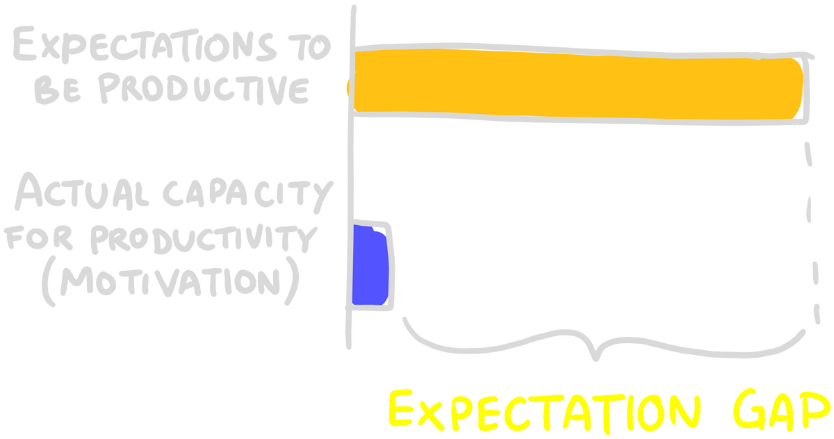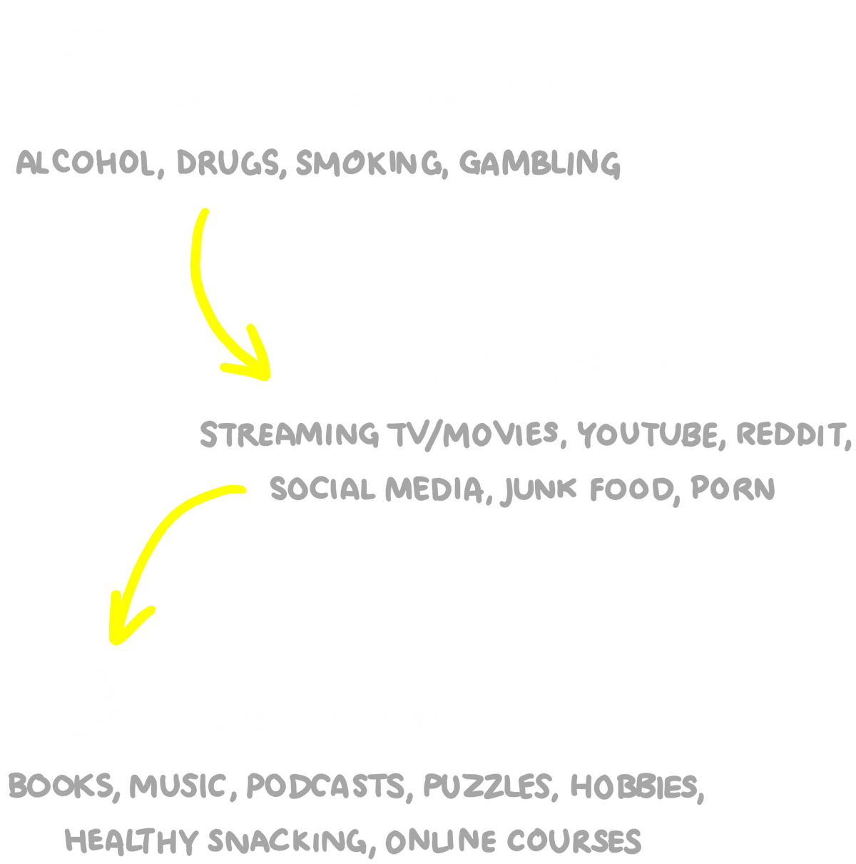 That last part is key—as much for your first iteration as for your fifteenth. We often try to transition out of a binge by jumping straight into productivity. It makes sense: we’ve just burned a lot of precious time, and there’s an urgent impulse to play catch-up.But it’s usually too much, too soon. The motivation-suppression symptoms are still intense, and the resulting Expectation Gap becomes unbearable.