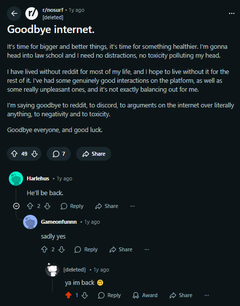 You try to willpower through it, but not 5 minutes later, you're back on Reddit.Then onto YouTube.Then TikTok.