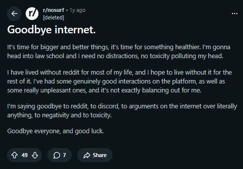 Apathy, lethargy. Entire days wasted away on Reddit, YouTube, Instagram, and TikTok.